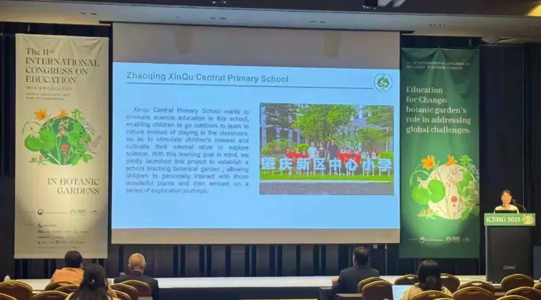 鼎湖山国家级自然保护区科教科科长彭丽芳作为中国代表团成员参加此次国际会议,并在大会上作题为《基于自然教育理念的校园教学植物园的建设、实施和使用——以肇庆新区中学小学为例》的报告,向世界展示了来自新区的教育智慧和方案。