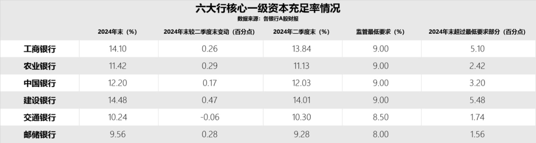 最新数据显示,截至2024年末,除交通银行外,其他五家国有大行的核心一级资本充足率较2024年上半年末均有不同程度的提高。