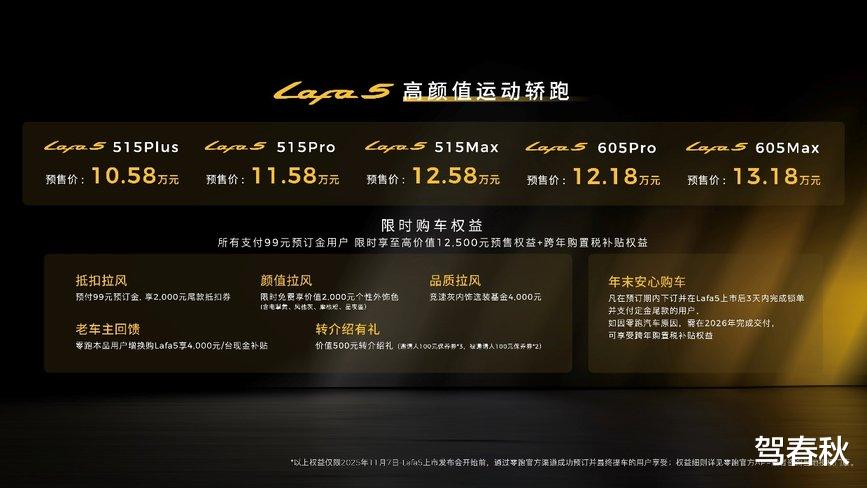 零跑一直以来都以性价比著称,这一次Lafa5作为紧凑级纯电轿跑,10.58万的预售价确实很有吸引力,如果正式的价格能进入到10万元以内的价格区间,那么它的竞争力将会进一步提升。